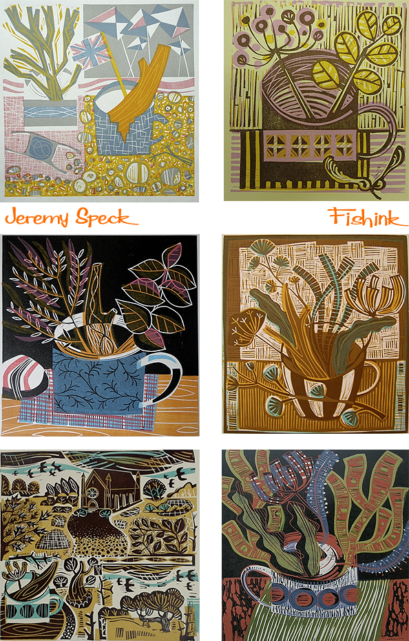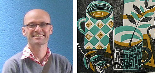 His still-life compositions are a more relaxing aside to the abstract work as they involve a more traditional use of lino and cutting tools, but they still find their inspiration in contrasting shapes and textures.