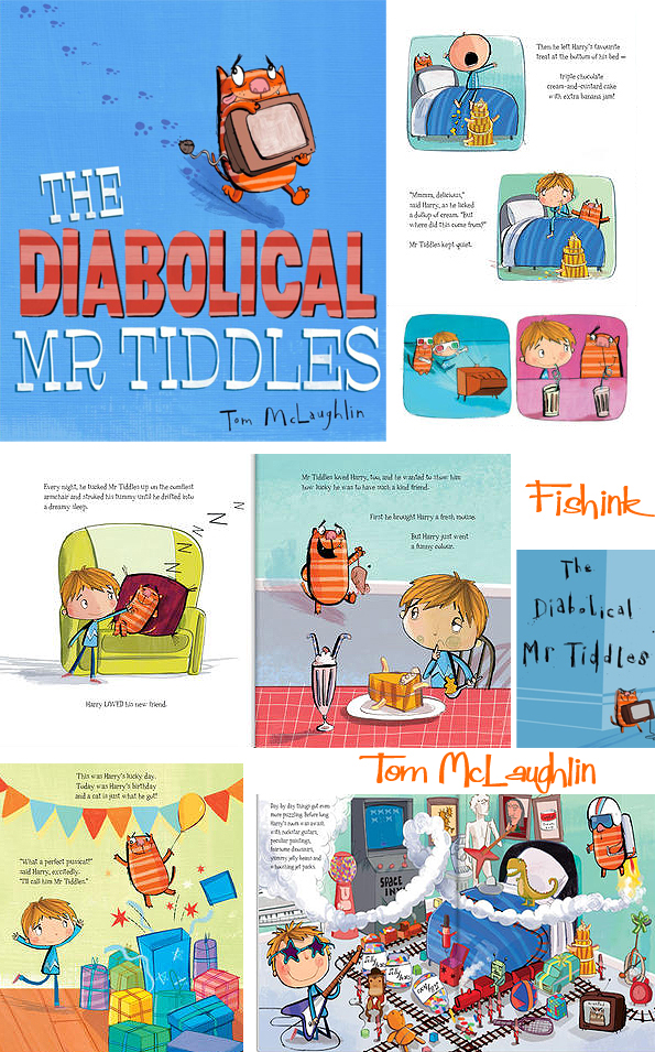 On the books side, Tom illustrated Mark Sperring’s picture book for Puffin, Captain Buckleboots on the Naughty Step (2011) and other ‘Naughty Step’ titles. Simon & Schuster published his picture book The Diabolical Mr Tiddles in January 2012.
