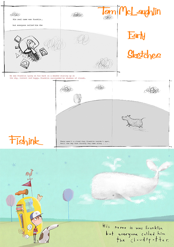 Thanks Tom for sharing your thoughts (and secrets) about your future books. I love the simplicity of your illustrations, the peaceful scenes of landscapes and wide skies, it certainly puts me in the right place to lie back and look for shapes in the clouds. Let’s not forget you don’t need to be a child to do this !