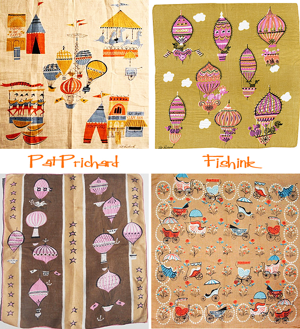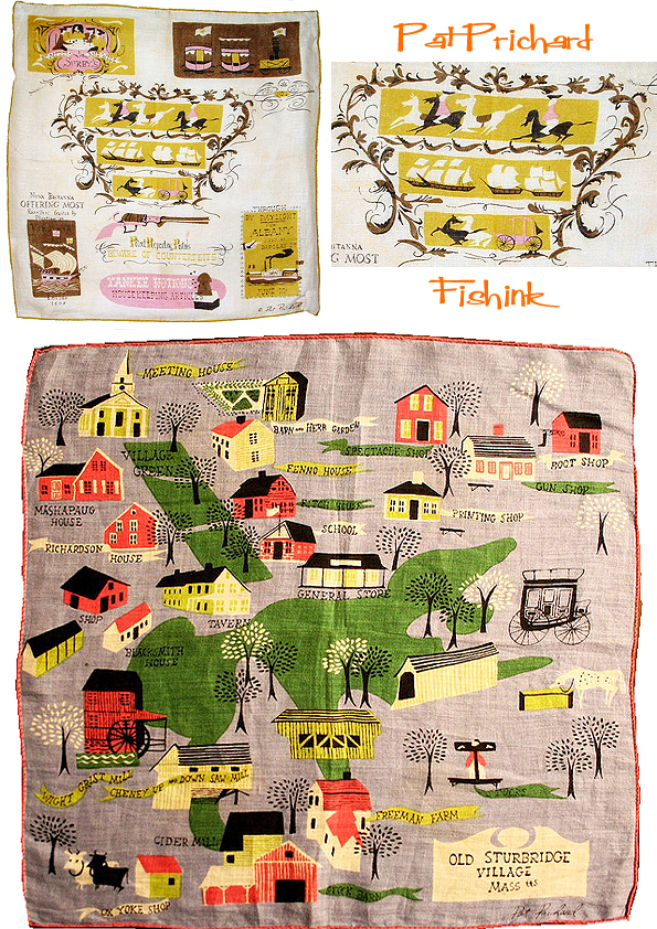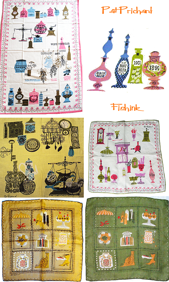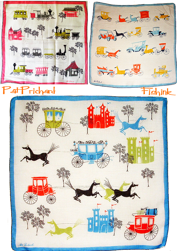 Welcome back to part 2 of this feature about 1950’s illustrator Pat Prichard. She is best known for her handkerchief designs. She also designed a wide range of household linens. As with many handkerchief designers from this period there appears to be so many subjects to select from when coming up with new design ideas.