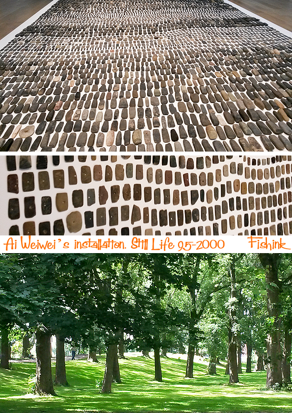 Photo above shows Ai Weiwei’s installation, Still Life (1995-2000), a mass-display of thousands of Stone Age axe heads and an iconoclastic gesture designed to offset the value and importance of these ancient objects. The Gallery is set in such beautiful grounds, here’s another image above of the trees at the back of the building.