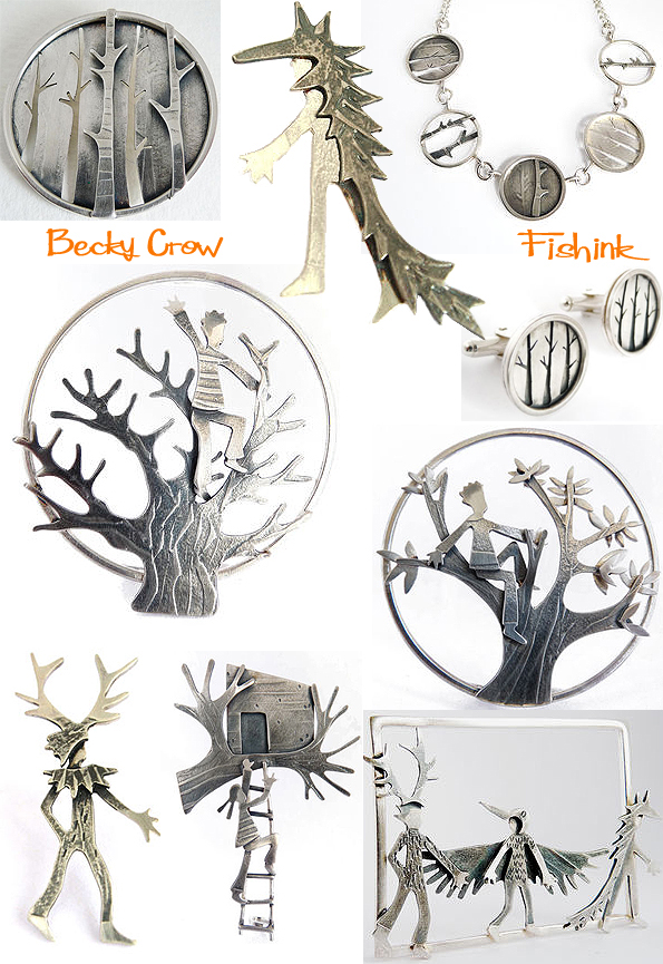 Talented Jeweller Becky Crow‘s work has always had a strongly illustrative leaning. It grows out of drawings and sketches some observational, some imagined. She is a wondrous link between the world of illustration and silver smithing.