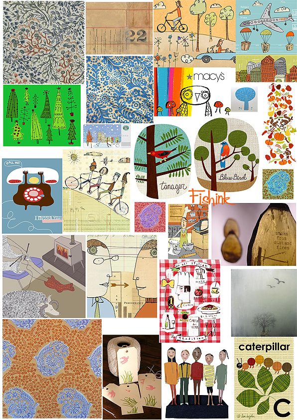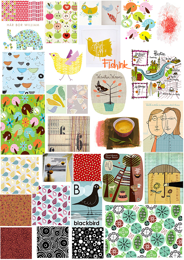 Since about 2008, I’ve been collecting images from the internet that have caught my eye. Way back then, I wasn’t so diligent in keeping records as to where images came from, or who had painted, photographed, illustrated or indeed created the artwork in the image. So I apologise in advance for their lack of referencing, but to be honest, it was purely about seeing groups of imagery together, that for whatever reason, I enjoyed. As I have managed to amass quite a few of these ‘collaged sheets’, I thought I would share them with you, in the hope that they may also provide some inspiration to you the readers, from their shape, colour, texture or out and out randomness : )