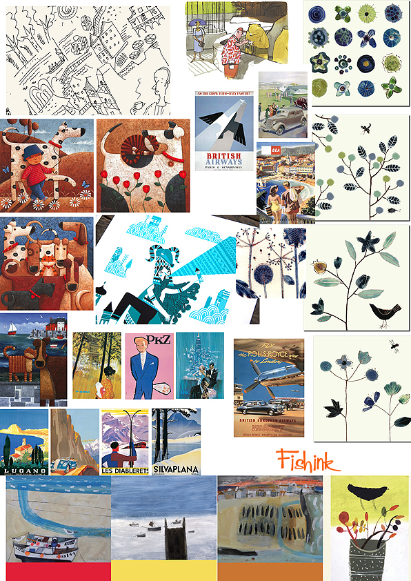 Since about 2008, I’ve been collecting images from the internet that have caught my eye. Way back then, I wasn’t so diligent in keeping records as to where images came from, or who had painted, photographed, illustrated or indeed created the artwork in the image. So I apologise in advance for their lack of referencing, but to be honest, it was purely about seeing groups of imagery together, that for whatever reason, I enjoyed. As I have managed to amass quite a few of these ‘collaged sheets’, I thought I would share them with you, in the hope that they may also provide some inspiration to you the readers, from their shape, colour, texture or out and out randomness : )