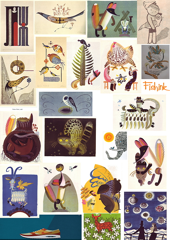 Since about 2008, I’ve been collecting images from the internet that have caught my eye. Way back then, I wasn’t so diligent in keeping records as to where images came from, or who had painted, photographed, illustrated or indeed created the artwork in the image. So I apologise in advance for their lack of referencing, but to be honest, it was purely about seeing groups of imagery together, that for whatever reason, I enjoyed. As I have managed to amass quite a few of these ‘collaged sheets’, I thought I would share them with you, in the hope that they may also provide some inspiration to you the readers, from their shape, colour, texture or out and out randomness : )