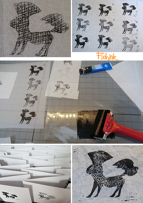 Part of my ‘free time’ from the blog posting has been absorbed with 1 to 1 tutoring and doing some local ceramics classes. One of my talented pupils created this, it’s a lino cut of her dog. We got quite creative in finding different ways to texture the print too.. I really like the effects.