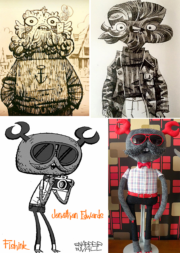 His creations and creatures have no boundaries. Jonathan often teams up with his talented partner Louise Evans aka Felt Mistress, to create some 3-D versions of his illustrated characters. How amazing are these ?