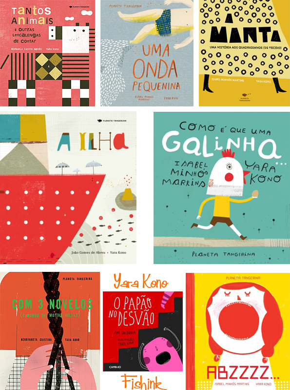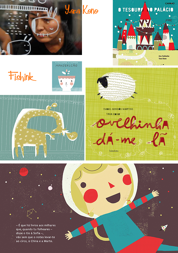 In 2008 she received together with Isabel Minhós Martins, an Honorable Mention at the 1st Compostela International Prize for Picture Books with the book “Ovelhinha Dá-me Lã”. In 2010 she won the National Prize of Illustration, with “O Papão no Desvão”, written by Ana Saldanha. In 2013 «A Ilha» by João Gomes de Abreu and Yara Kono, won a Mention in Opera Prima Category at the Bologna Ragazzi Awards. I came across her work through a calendar I found whilst in Lisbon, her work is cheery, colourful and full of life.