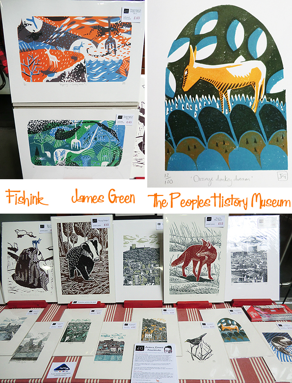 Saturday was a treat to pop into the People’s History Museum and take in the delights of the eleventh Manchester Print Fair. With over 40 artists attending and showing their work, there was a great cross-section of styles to be found. Like these beautiful lino cuts by James Green. I did love his donkeys.
