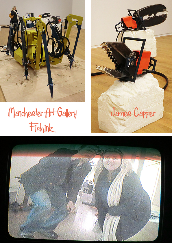 In another room were James Capper’s rather ferocious looking machines. These spider / snap-dragon looking mechanical sculptures would have a great time patrolling your garden or home interior… if you trusted them to be left alone ! I’d have to take the plugs off just in case they sprang to life and went wild : )
