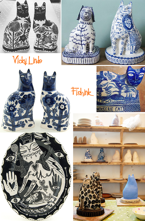 Her pieces are wonderful! I love the way they are quirky and whimsical yet firmly rooted in tradition. As a Fifer, they immediately call to mind the Wemyss cats produced by the Wemyss pottery.