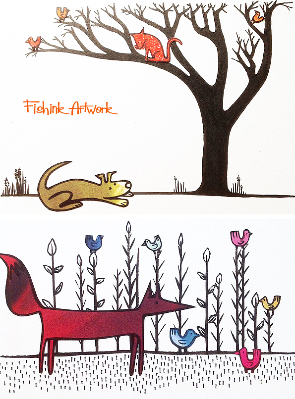 Wow, wow, wow ( or should I say bow, wow ) a wonderful collection of work. You’ll do FAB. Out of my favourites the fox and the flowered tree is definitely a winner. And your birthday illustration is another xxxx or perhaps the red fox amounts the pigeons ….too many to choose xxx good luck my lovely friend