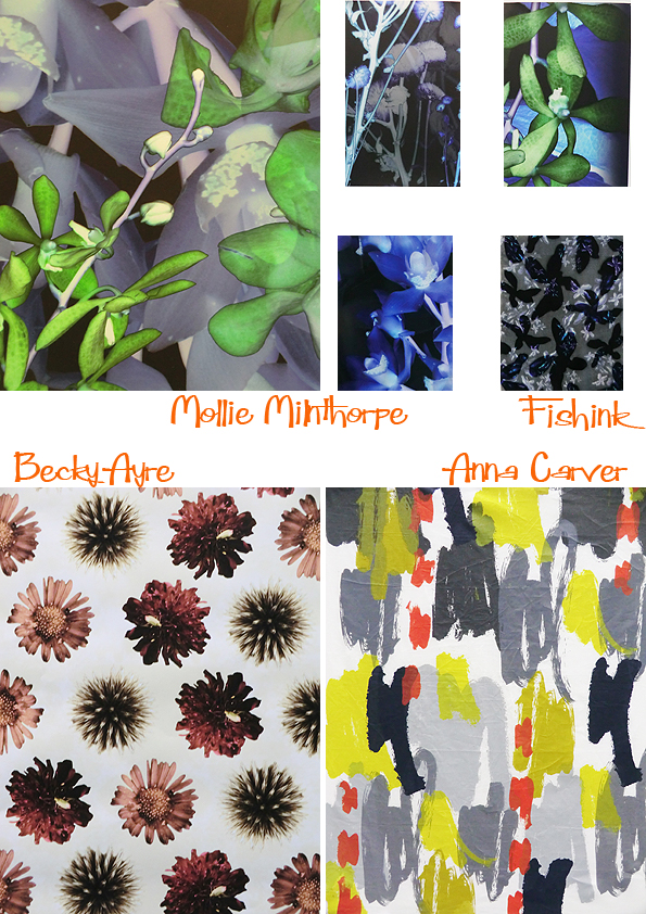 More botanical work from Becky Ayre and a freestyle, fifties-feeling print from Anna Carver.