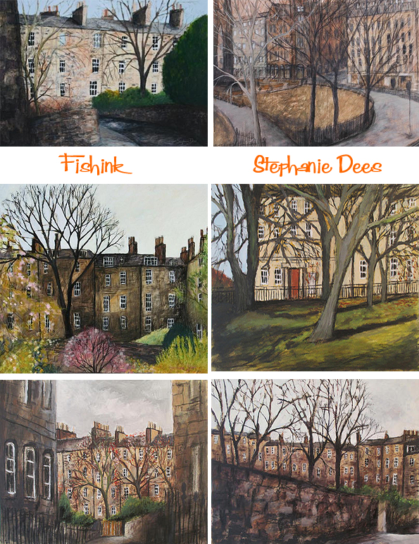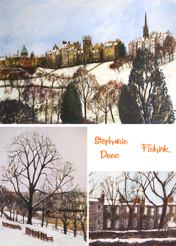 Summer through to Winter even the season’s are explored in Stephanie’s detailed work. I love the grey skies contrasted with the sandy buildings here. Wonderful work, evoking great memories of times spent in Edinburgh.