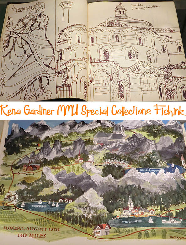 The highlight of the exhibition for me was seeing Rena’s sketchbook and this wonderful collection of holiday paintings.