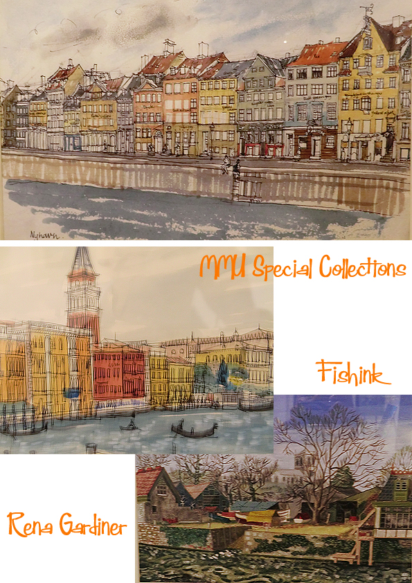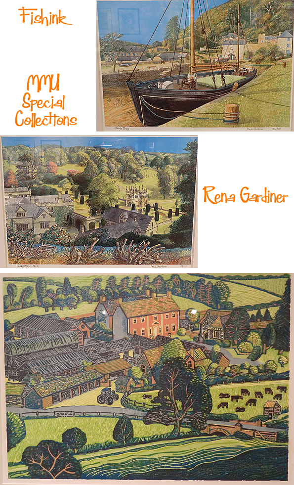 For those of you who managed to get to see the (now ended) exhibition at the MMU Library, Special Collections Gallery that ran for just over two months, you’ll know what a joy it was to see some of Rena’s work, ‘up close and personal’. I was lucky to find the time to pop into Manchester last wet Wednesday, especially to see it, and was very thankful that I had. Sadly it’s very difficult to get decent images with everything being behind glass, but I hope you can see just how beautiful Rena’s illustrations, water colours, lithographs and lino-cuts really are.