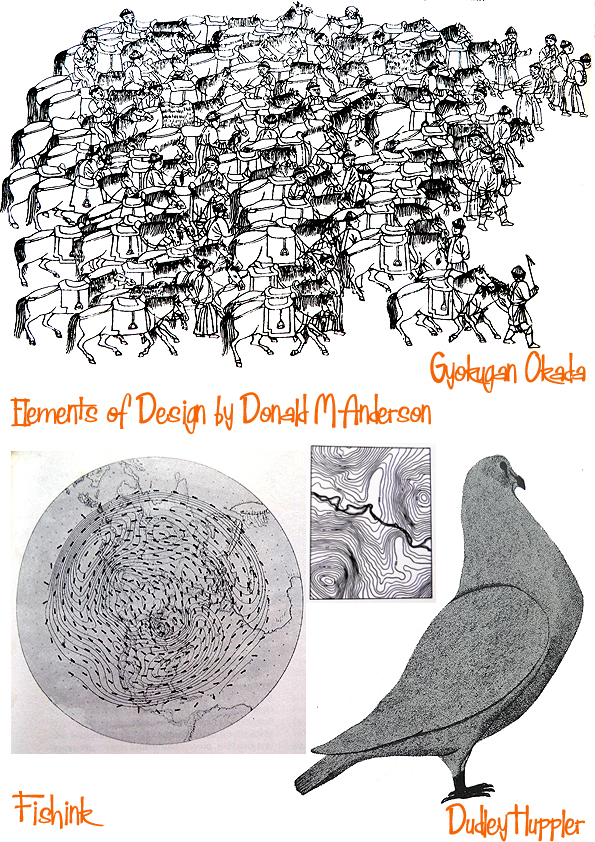 He was born 1915 in Bridgewater, South Dakota, and became an influential artist and designer, publishing such textbooks as this one (‘ The Elements of Design ‘) in 1961 and ‘ The Art of Written Forms ‘ in 1969, whil’st he taught art at the University of Wisconsin, Madison. He also contributed some of his illustrations (above) to the book. He lived to be 80, and passed away in 1995.