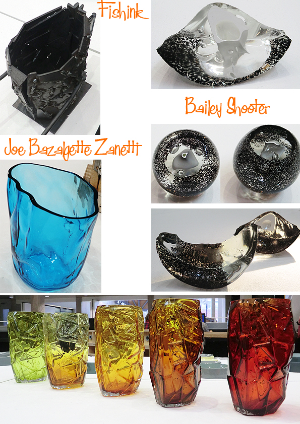Joe Bazalgette Zanetti revealed the time consuming process of making a mould for a glass vase. I did think about those sixties vases from Whitefriars when I saw all the colours lined up. Great work Joe. Bailey Shooter showed us that shards and segments could equally be as beautiful as the whole form.
