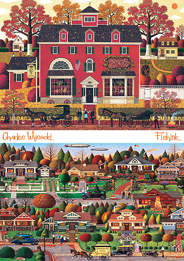For me Charles earlier work from the sixties has much more life and vibrancy to it. I love his painterly skies and textures so much more than the Americana style he later adopted, which although they’re busier, they are also crammed full of people, detail and flatter perspectives. It’s almost as though they are the work of two separate artists.