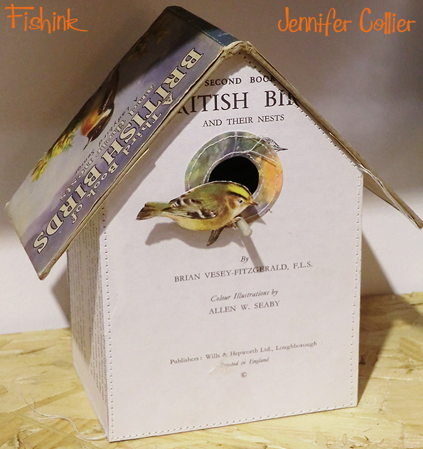 A greatly re-purposed book of British Birds turned nesting box. A stitch in time as they say !