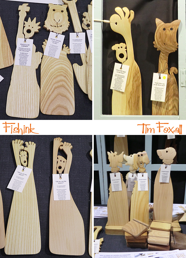A few fun, yet practical, kitchen spatulas from wood turner and ex-toymaker Tim Foxall. Obvioulsy the rather sedate looking dogs caught my eye.