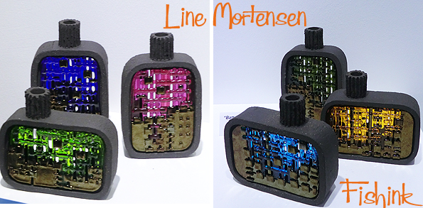 I wonder why these retro looking shapes caught my attention ! Great work from Line Mortensen, who is a Danish contemporary mosaic artist based in Scotland. Her Scandinavian heritage and architectural background shines through in her sculptural objects which are imaginative, detailed, textured and abstract.