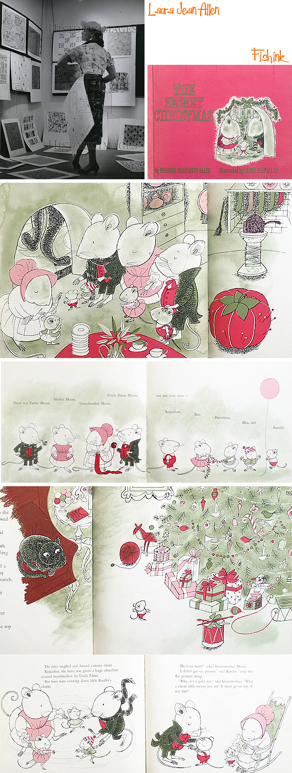 Here’s a rare image of Laura in the midst of sorting through her textile designs and another of her books The Secret Christmas.