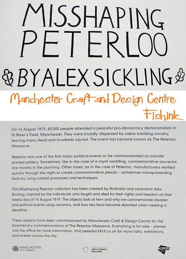 I went into town yesterday to go to the Manchester School of Art Degree show which I’ll talk more about later this week and early next week. Whilst I was there, I popped into the Manchester Craft and Design Centre and saw this comissioned work by Newcastle based ceramist Alex Sickling, to mark the 200th anniversary of the Peterloo Massacre in August this year.