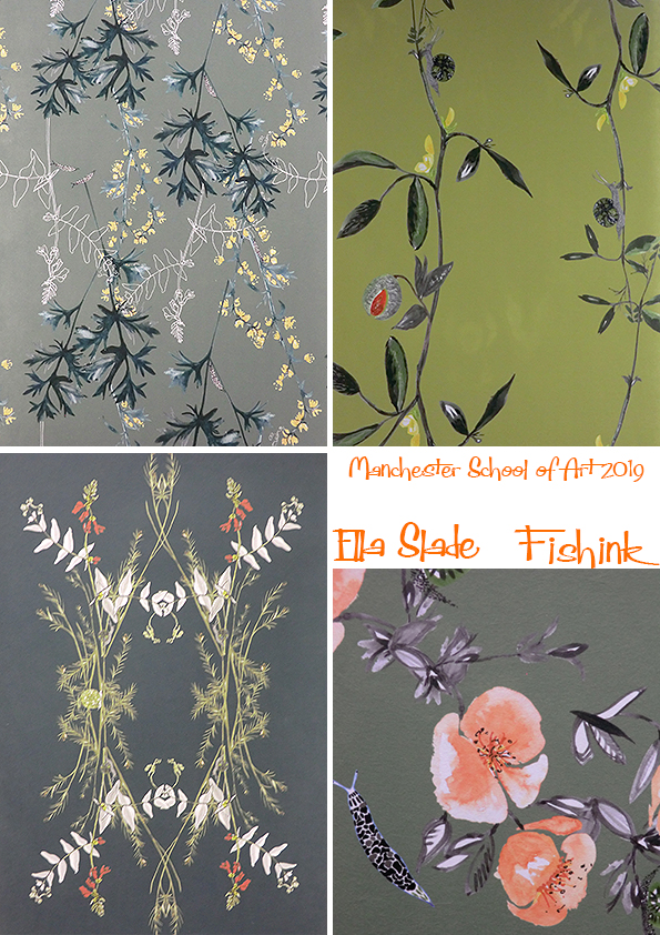“My final collection ‘Fresh Traditional’ includes original drawings, digitally printed wallpapers and digitally printed fabrics for cushions and curtains. The collection is inspired by botanical drawings from Manchester Metropolitan Library Archive and my own photographs of florals. ”