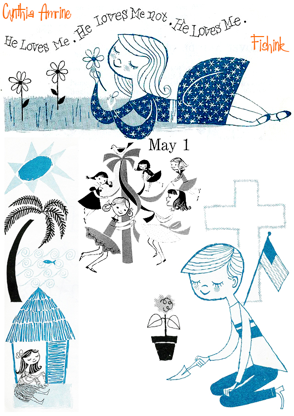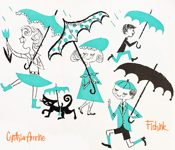 For those readers of Fishink Blog, growing up in the U.S.A in the fifties and sixties, the artwork of Cynthia Amrine may seem familiar. Her bold distictive style using, line, shading, texture and minimal colour was as popular then as it is today.