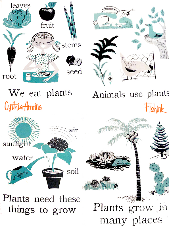 Many illustrators (like Helen Borten or Bernice Myers) working in the mid century found this style to be the way forward. Publishing costs were expensive, so artists were encouraged to use additional textures rather than colours. Cynthia’s work for children is particularly engaging as it’s clear, precise and yet still has an educational element, that combines both fun and humour too.