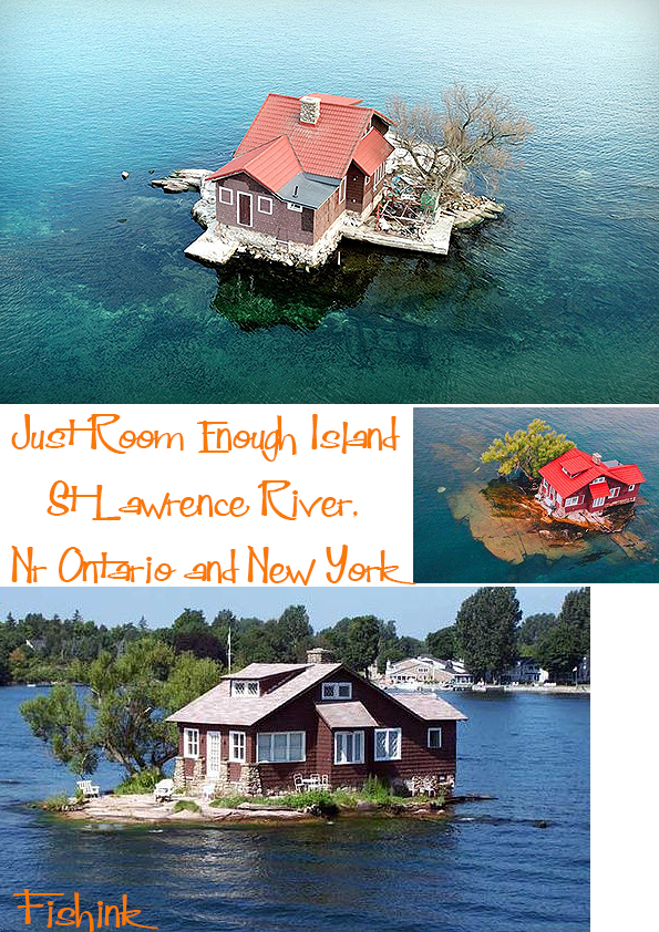 Just Room Enough Island is part of the Thousand Islands in the St. Lawrence River. It is the smallest of the 1,864 islands in the famous archipelago shared by the cities of Ontario and New York. The Island counts as a legitimate part of the Thousand Islands because it satisfies these state-given criteria: 1) Above water level year round; 2) Have an area greater than 1 square foot (0.093 m2); and 3) Support at least one living tree.