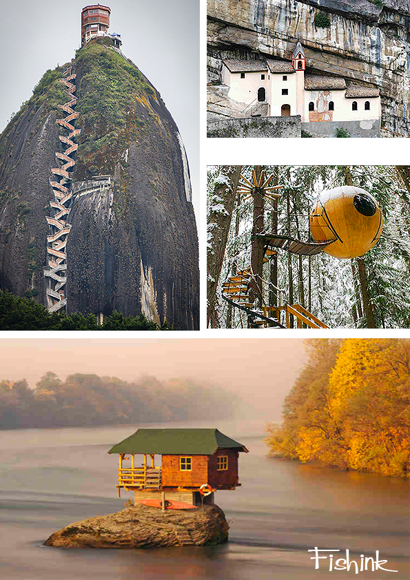 Hidden between the mountains in northern Portugal near the city of Fafe and a large wind field is the “Casa do Penedo”. (Top Image) The house was built starting from four giant rocks that were already on site and it was inspired by the American cartoon “the Flinstones”.