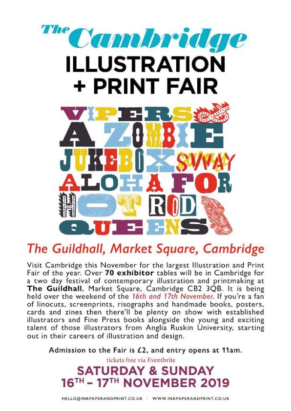 Secondly for all living around the Cambridge area, there’s a similar event on the same weekend, i.e. the 16th and 17th November. It’s called the Cambridge Illustartion and Print Fair and you can register here or admission is only £2.
