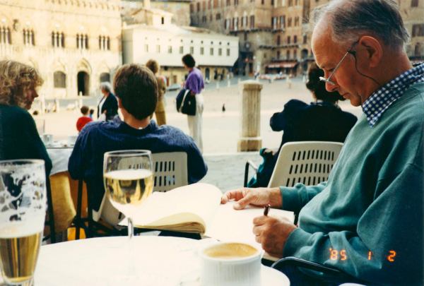 Brian sketching in Sienna on the Piazza del Campo, Italy in 1990.