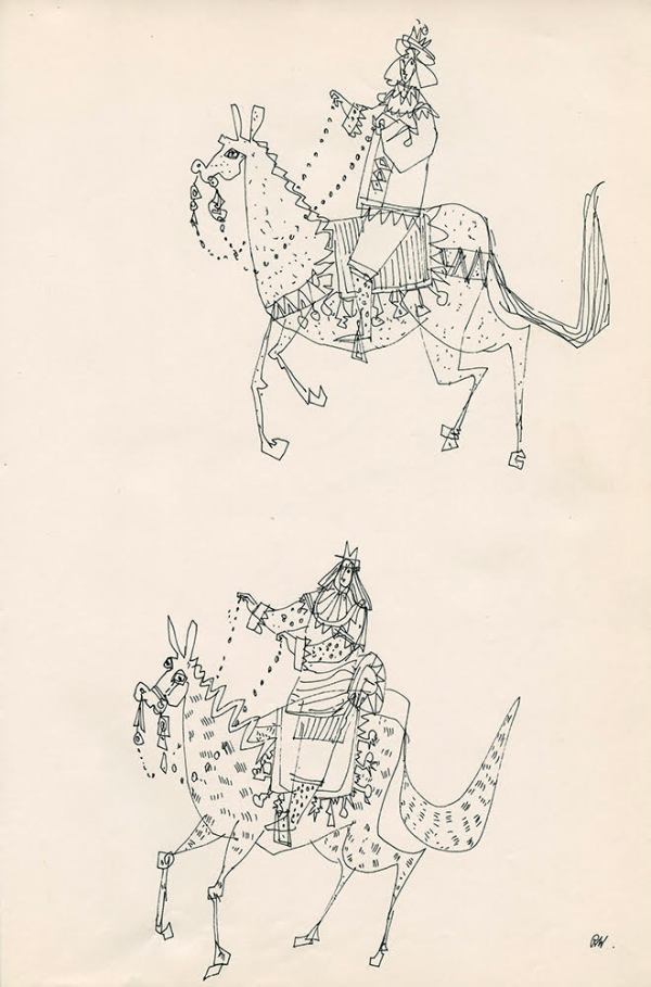 Preliminary drawing for The Lion And The Rat, the La Fontaine fable published in 1963