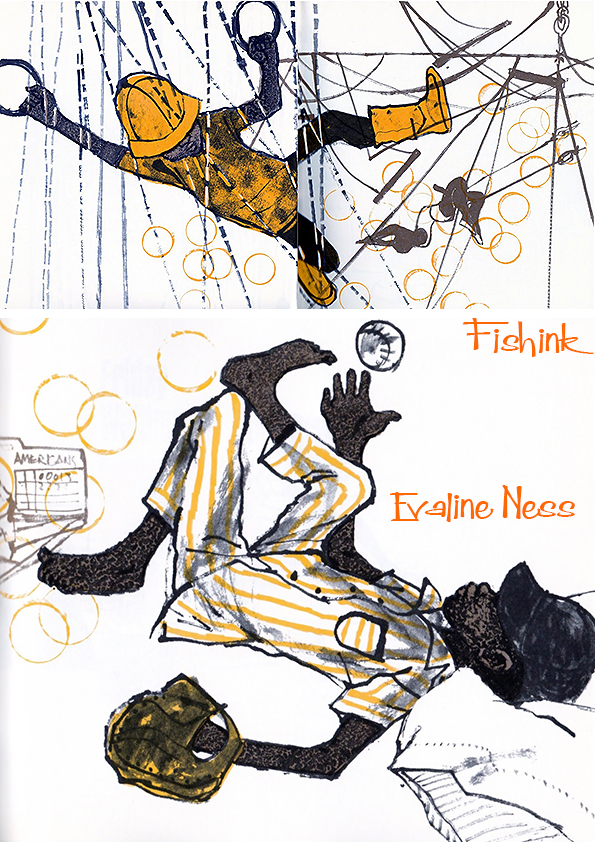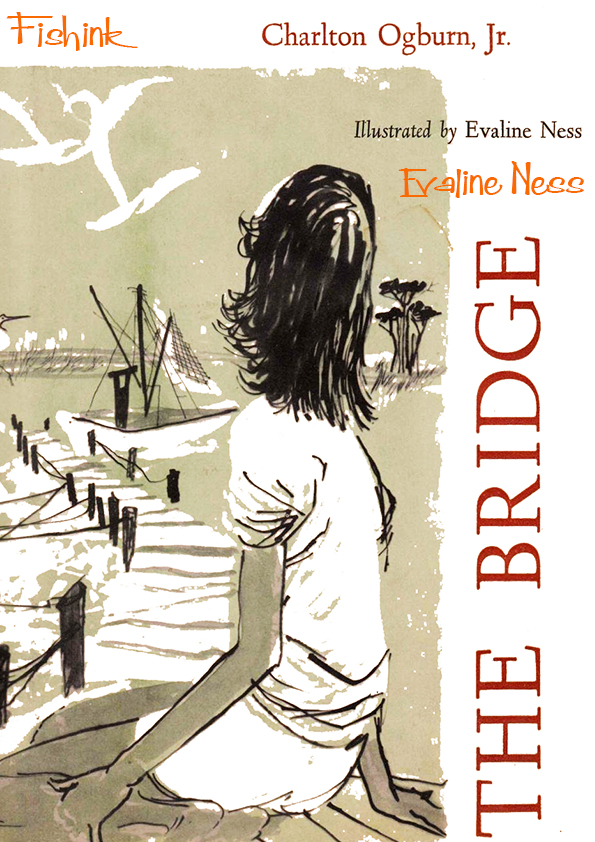 Evaline considers her illustration career to have officially begun in 1957 when Mary Cosgrove, editor at Houghton Mifflin, approached her with the manuscript for The Bridge by Charlton Ogburn. Jr. Originally, Ness refused the offer, thinking the profit would not produce enough income for her to live on. Cosgrove persisted and eventually Evaline agreed. She used offset printing techniques for the production of The Bridge. Ness pushed her silkscreen illustrations beyond the page margins and integrated text outside strict boundaries. The Bridge received much acclaim and Ness decided to leave commercial illustration and only focus on book illustration. In the following years, Ness’s use of mixed media and experimental materials garnered accumulated attention from a wide audience.