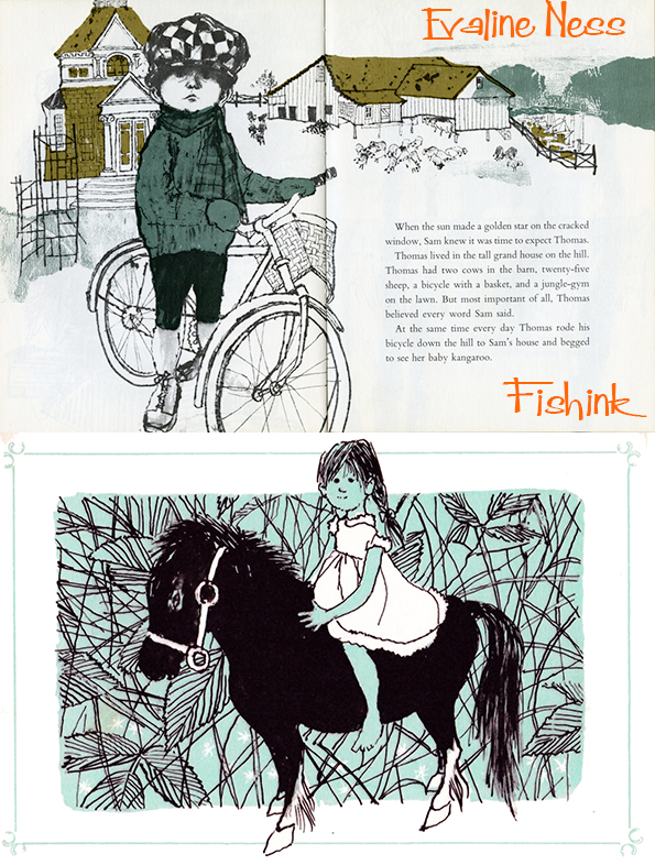 I came across Evaline Ness through her jacket cover illustrations for Betty Cavanna’s books. Thank you so much for sharing this information about her work! (I think I’ve become a Ness devotee!)