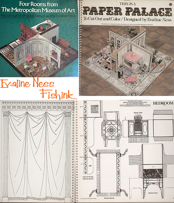 Late in life Evaline experimented with cut-out colouring books such as Four Rooms From The Metropolitan Museum of Art To Cut Out and Color (1977).