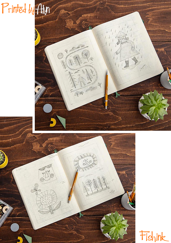 Great to see Alyn’s original sketchbook ideas and how they develop into a final print.