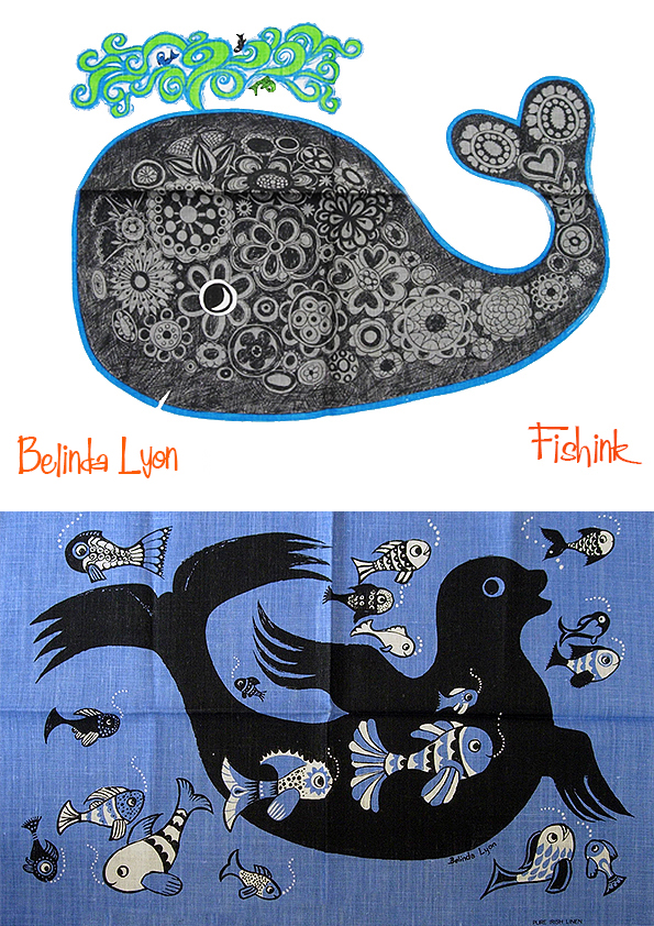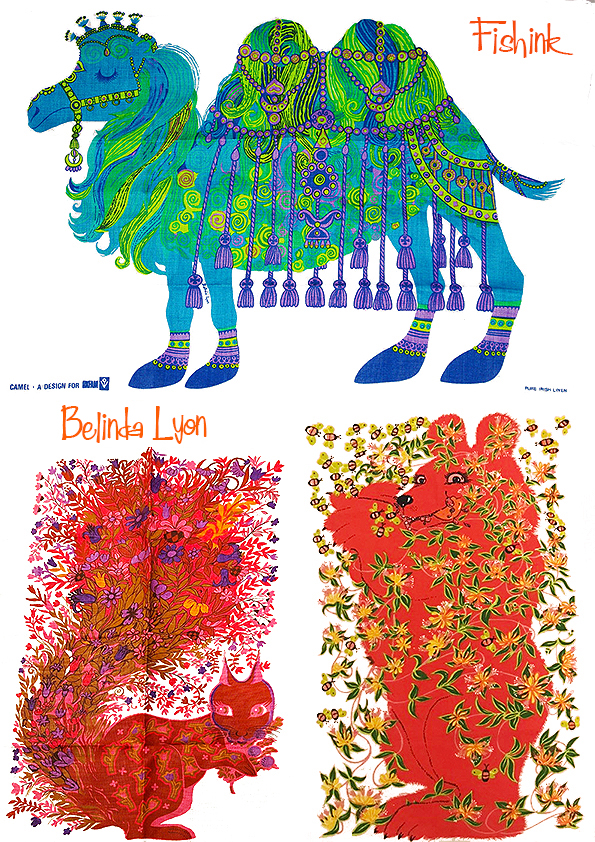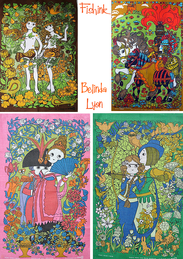 Belinda Lyon’s designs also appeared on tea towels sold by a few other companies during the 1970’s.