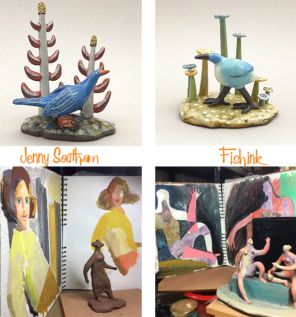 In fact I usually dive straight in to making the clay sculptures directly either from my imagination or more latterly straight from the knitting patterns themselves. I might make a series of small maquettes first, before more ambitious pieces. I am too impatient often to makes sketches, collages or paintings first, although when I do give myself permission to play two-dimensionally I enjoy doing them hugely. I feel that I should be working in clay all the time, which is ridiculous really, as in fact I feel that my clay work benefits from the process of initial two-dimensional interpretation first. What I would love is a dedicated painting/ drawing/ collage studio that I can go and immerse myself in at any time and not have to tidy things away in between times. But I guess that’s the same for many of us.