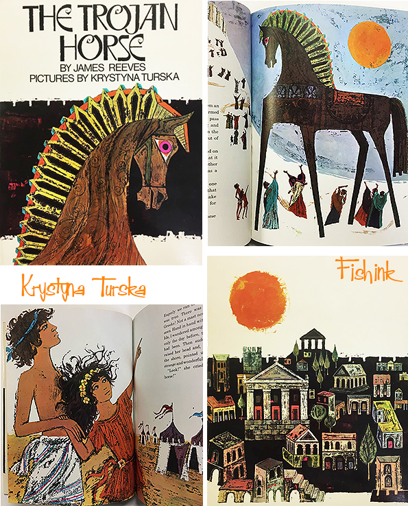 We also had a book I thought was in the same sequence as ‘The Trojan Horse’, but apparently wasn’t – ‘Daedalus and Icarus’ by Penelope Farmer, also with very distinctive illustrations, also very much of its time – I think it came out only a year or two after ‘The Trojan Horse.’