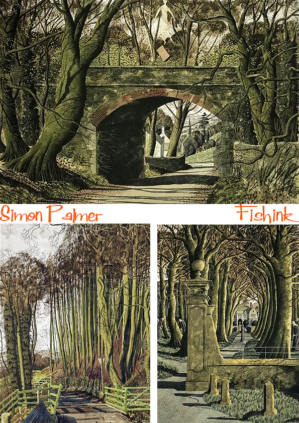 Simon Palmer was born in Yorkshire in 1956, and graduated from art school in 1977. He has exhibited extensively since 1980, and held ten one-man exhibitions in London with JHW Fine Art. For me his work has flavours of James McIntosh Patrick, Paul Nash, Eric Ravilious, Samuel Palmer, Stanley Spencer and even a tiny sprinkling of Beryl Cook !