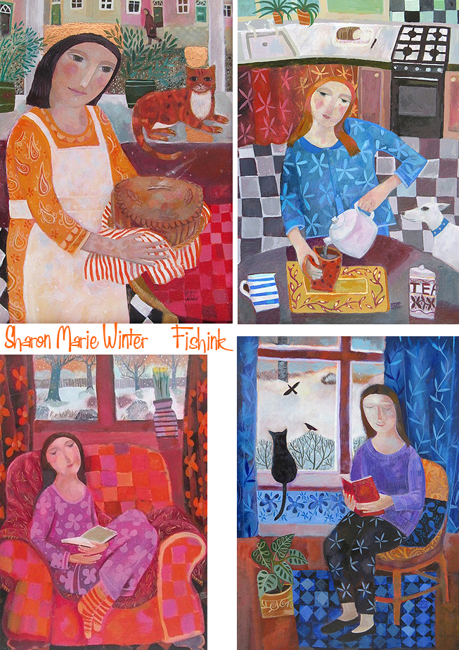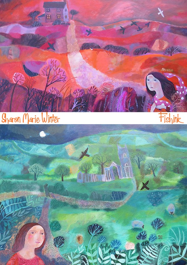 Sharon Marie Winter is an artist with an eye for the calm and considered values of day to day life. I see her work as a journey that dips a painterly toe with Chagall, Beryl Cook and a dream time, where one can feel both safe and calm amongst a sea of nature inspired landscapes. I wanted to discover more about Sharon’s imaginary world and how her serene paintings naturally evolve.