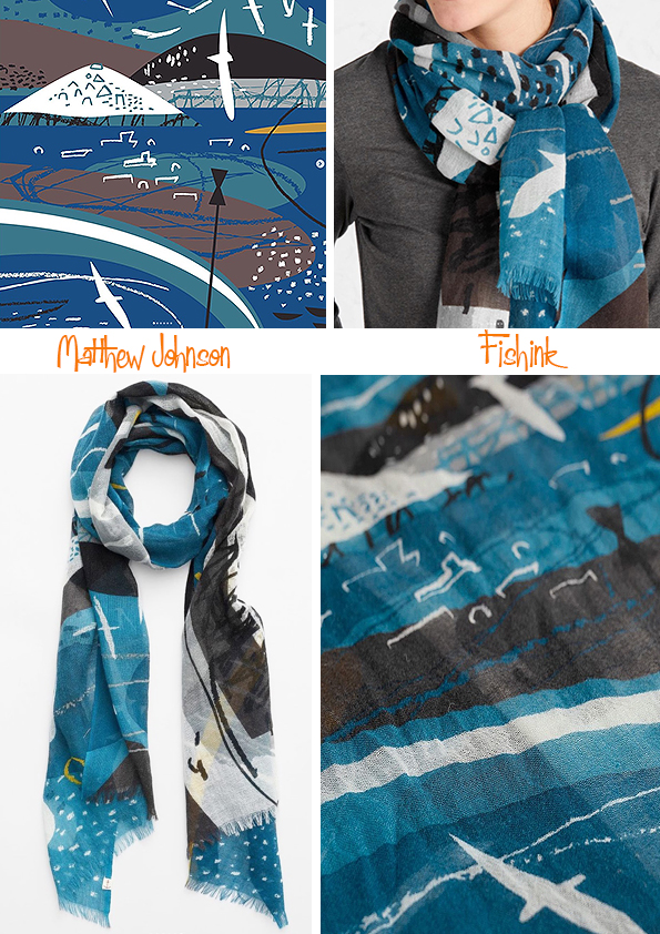 It’s lovely for me as a textile designer, to see how Matt’s art naturally lends itself to work as scarves and fashion fabric.