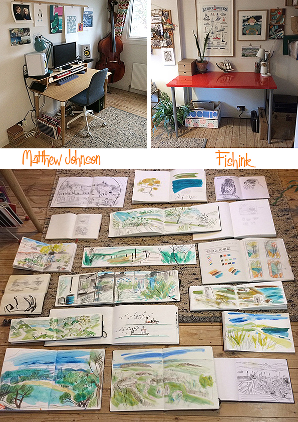 Here’s is a glance around Matt’s studio room at home where everything is created. Also you can see some of his fab sketchbooks.
