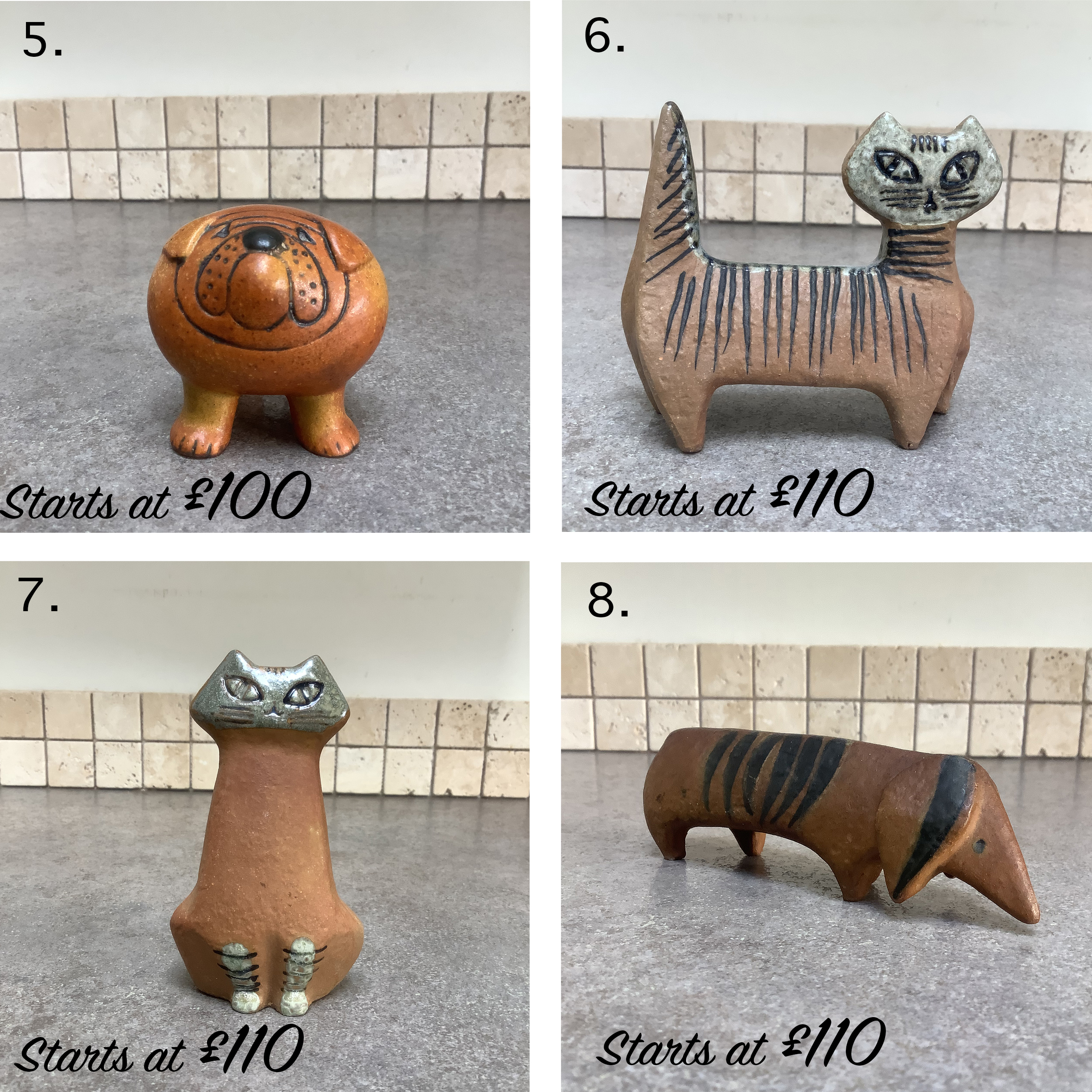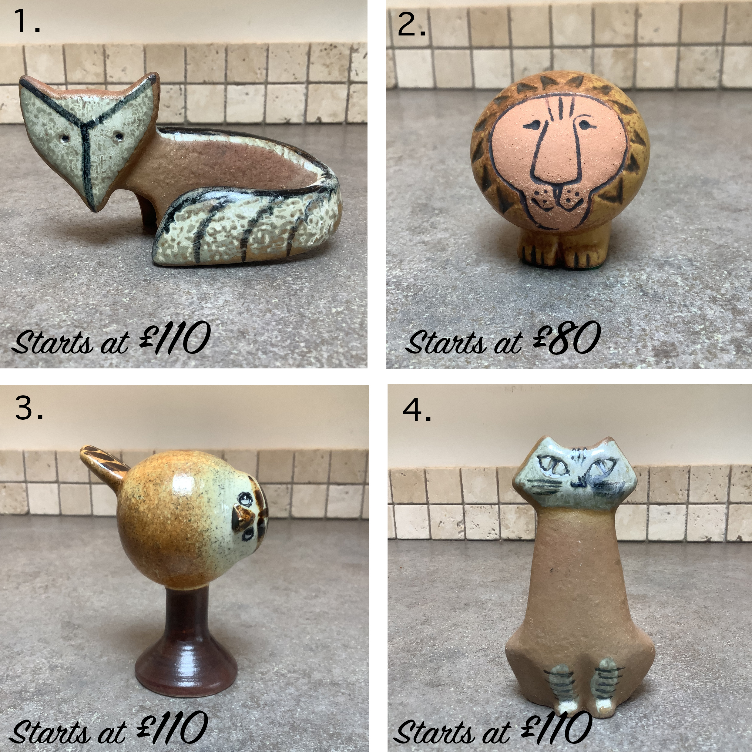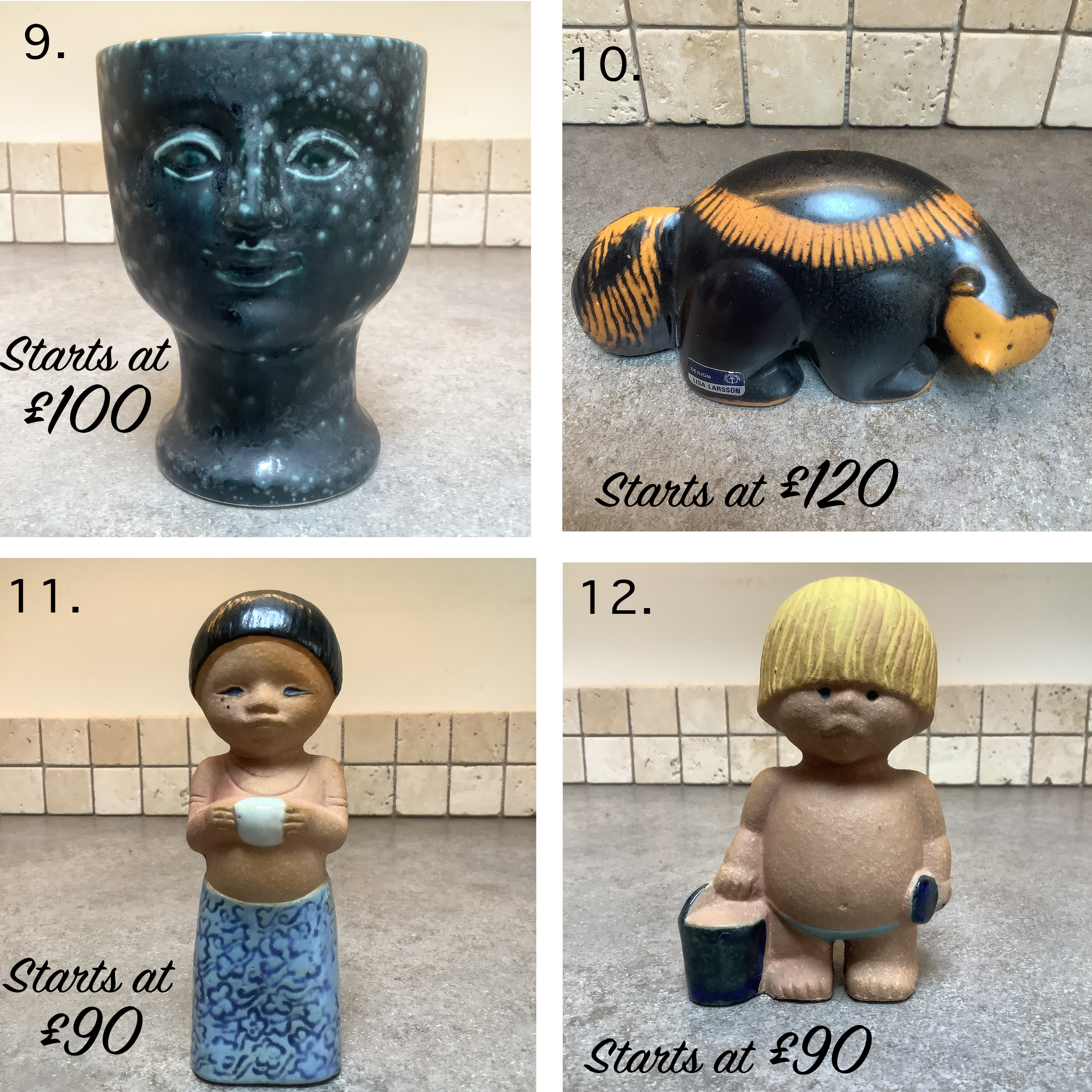 Each of the fourteen ceramics have a starting price (top left) and the costs of postage will be approximately £10 per item (in the UK) for next day special delivery. People bidding from other countries will be contacted after the bidding finishes on Saturday at 10pm GMT, to finalise safe delivery costs with them personally, probably on the Sunday. All ceramic deliveries will travel insured and fully tracked to your door.