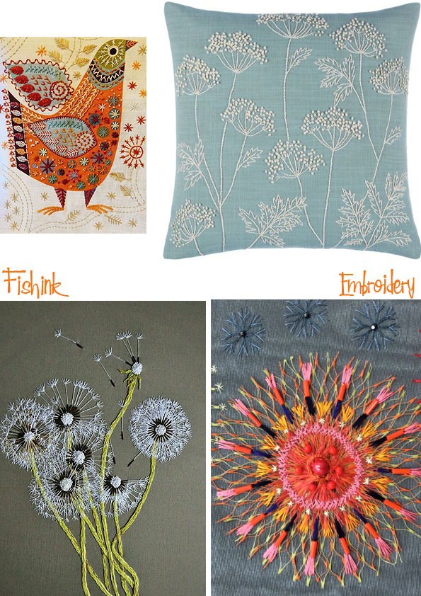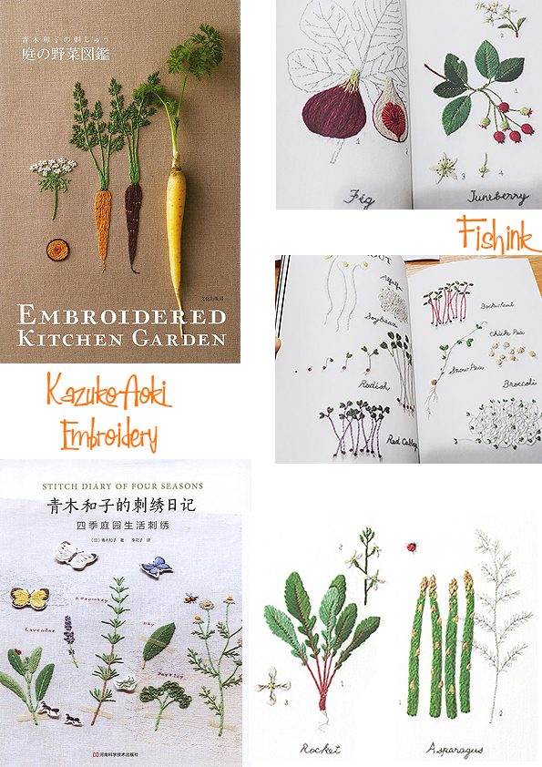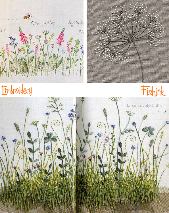 Finally I came across the delicate organic work of Japanese embroiderer Kazuko Aoki. Such a talented, popular Japanese textile artist whose work pops up in many embroidery magazines and exhibitions. Her delicate drawings are inspired by her great love of nature and the flowers in her own garden, which often provide the starting point for her creative designs. Kazuko loves to combine other embroidery techniques with cross-stitch to introduce a beautiful and unexpected element in her art and in the process create an original new style.