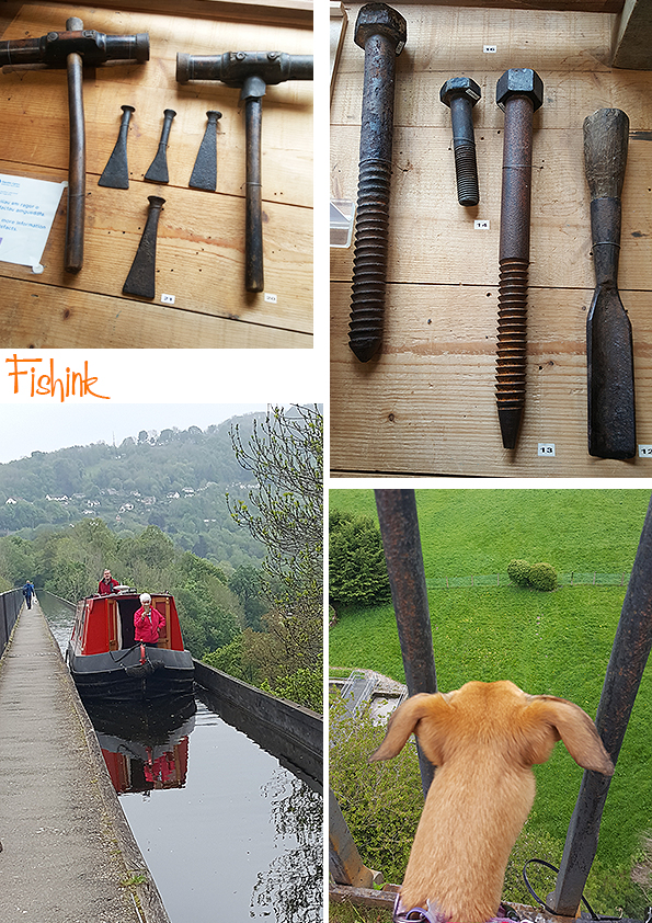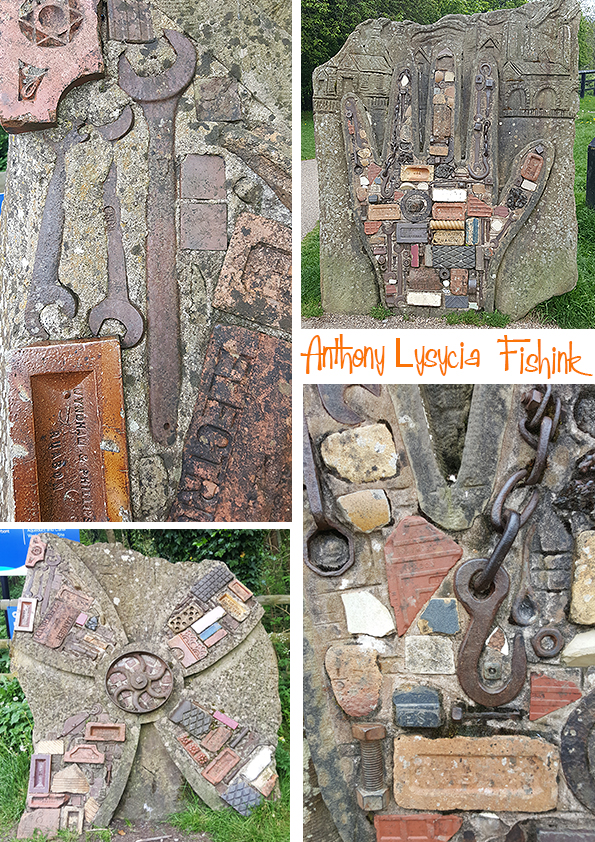 At the visitor car park entrance to the Trevor Basin is a sculpture (above) showing a narrowboat propeller. It represents setting off on a journey from Trevor. There are six sculptures by Anthony Lysycia around the aqueduct, commissioned in 2003 as the bid for World Heritage Status was beginning to be considered.